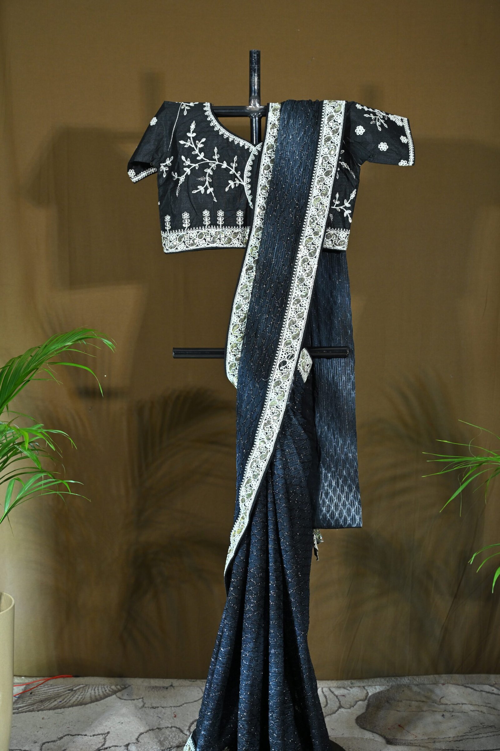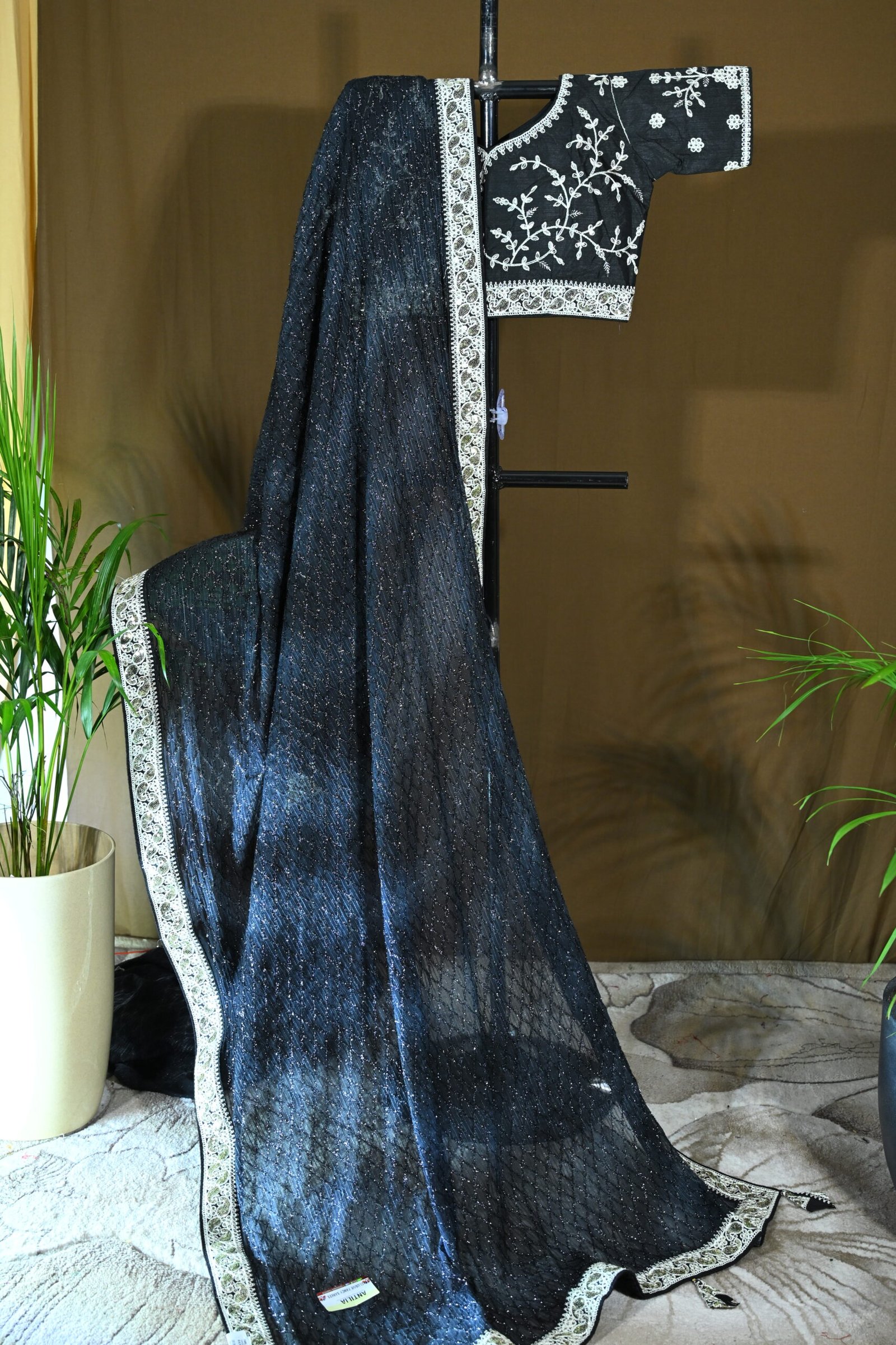 Color: Black, matching the saree.